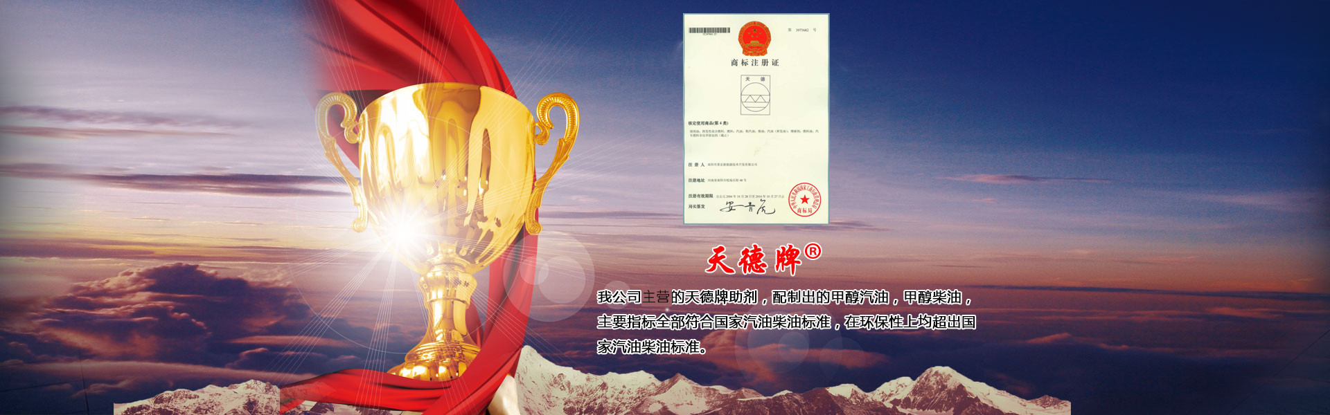 本公司主要產(chǎn)品有甲醇汽油添加劑、甲醇柴油添加劑、車用復(fù)合柴油添加劑、甲醇燃料油添加劑以及雙燃料控制器和油罐除水劑六大系列九種產(chǎn)品,具有廣闊的市場空間和經(jīng)濟(jì)效益。其中添加劑系列已在國家商標(biāo)局注冊為“天德牌”,天德牌問世二十多年來,在保證產(chǎn)品質(zhì)量的同時,給廣大客戶帶來了可觀的經(jīng)濟(jì)利益,得到廣大油品行業(yè)用戶的一致好評…… 了解更多+
